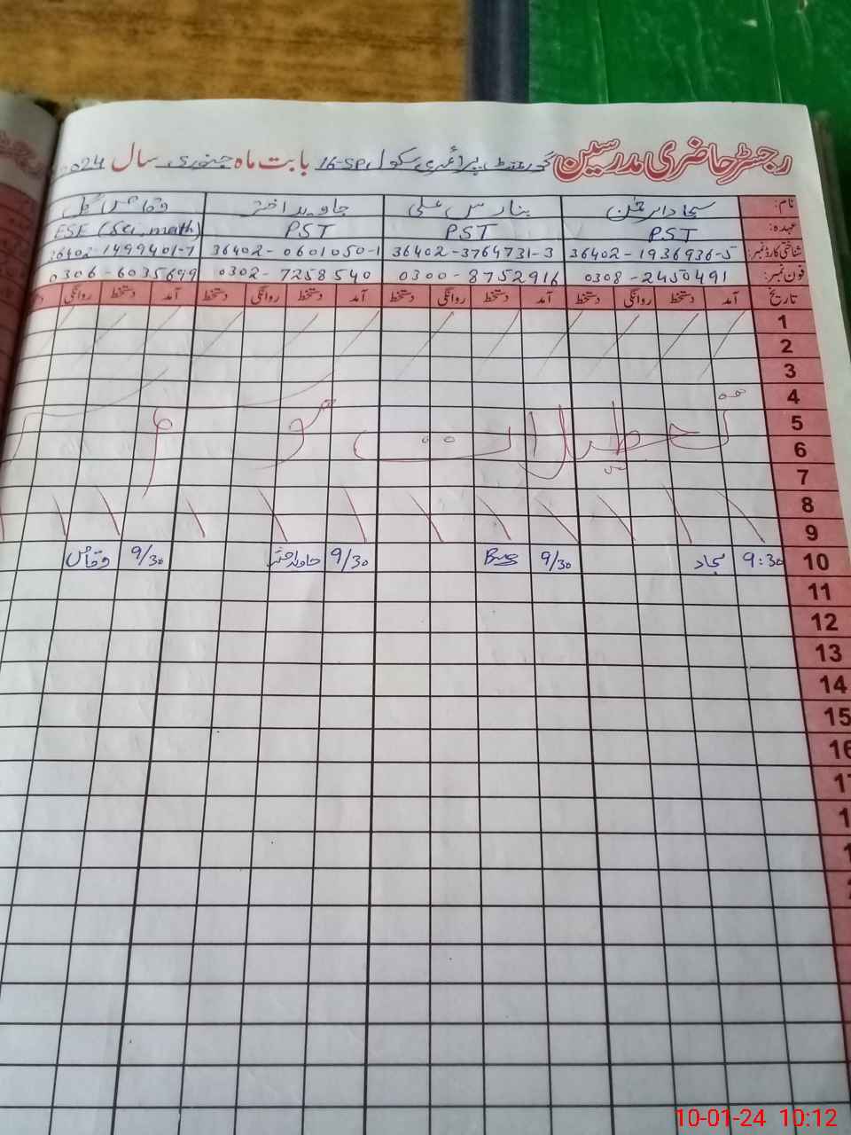 | Name: SA**** URRE**** Designation: (School Headmaster's/Headmistress's) PST Phone/Cell Number: 03**** |