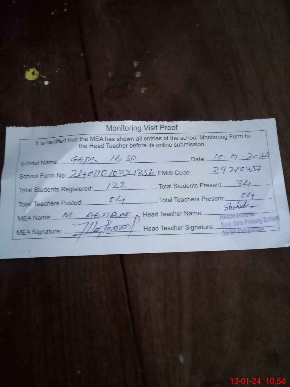 | EMIS Code: 39210357 | Name of School: GGPS 16 SP | |||