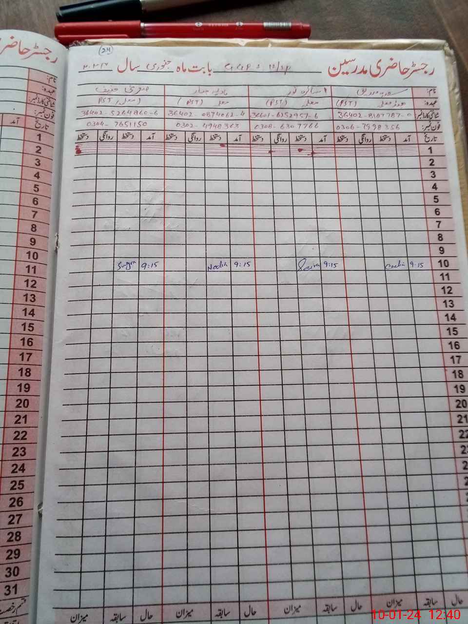 | CNIC | Full Name | Designation | R/C | Absence During Last Calender Month |