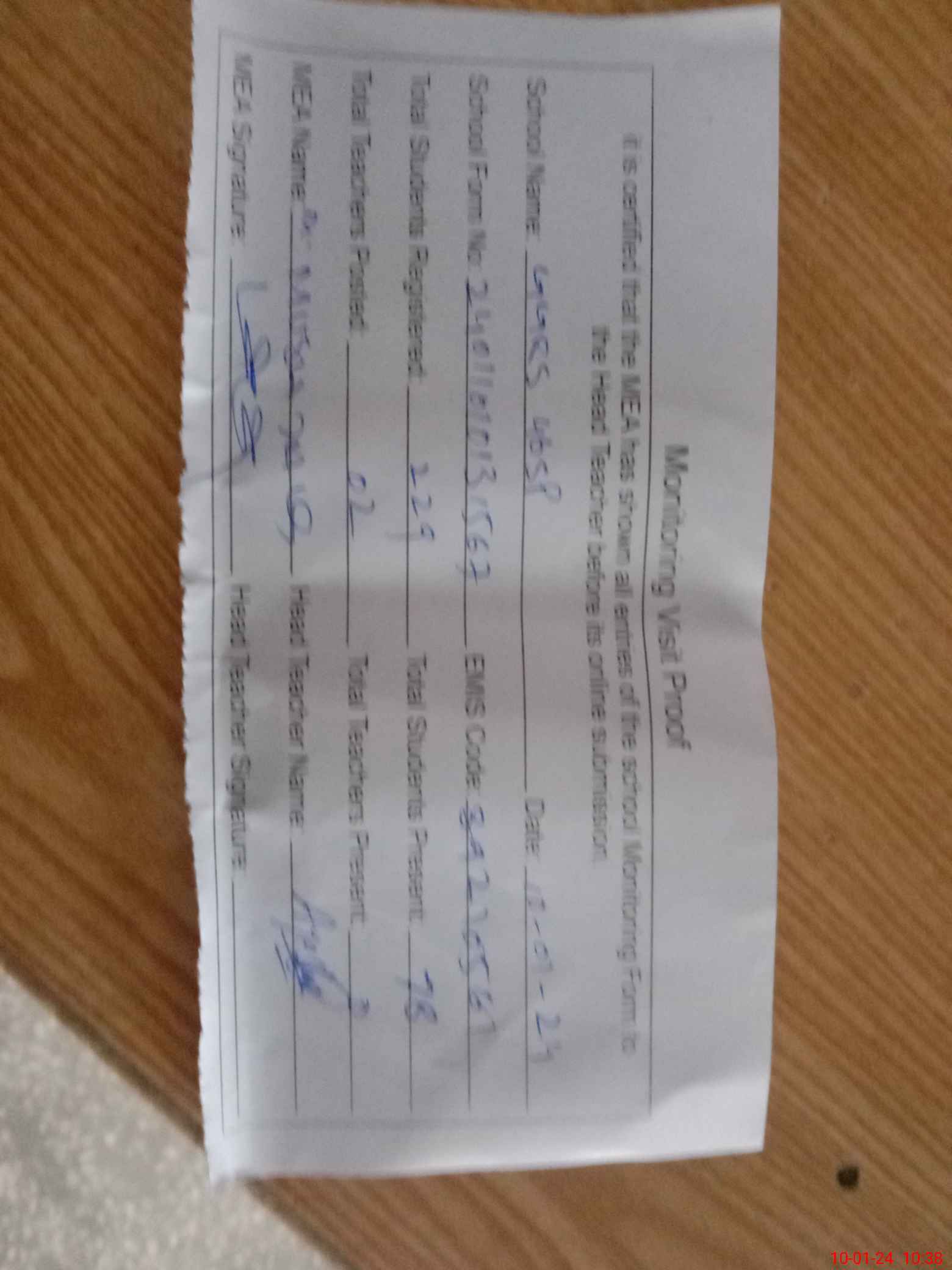 | Certified that this School was Inspected by the Undersigned MEA/DMO Today and the Information Stated Above is as Per Record. | |||||