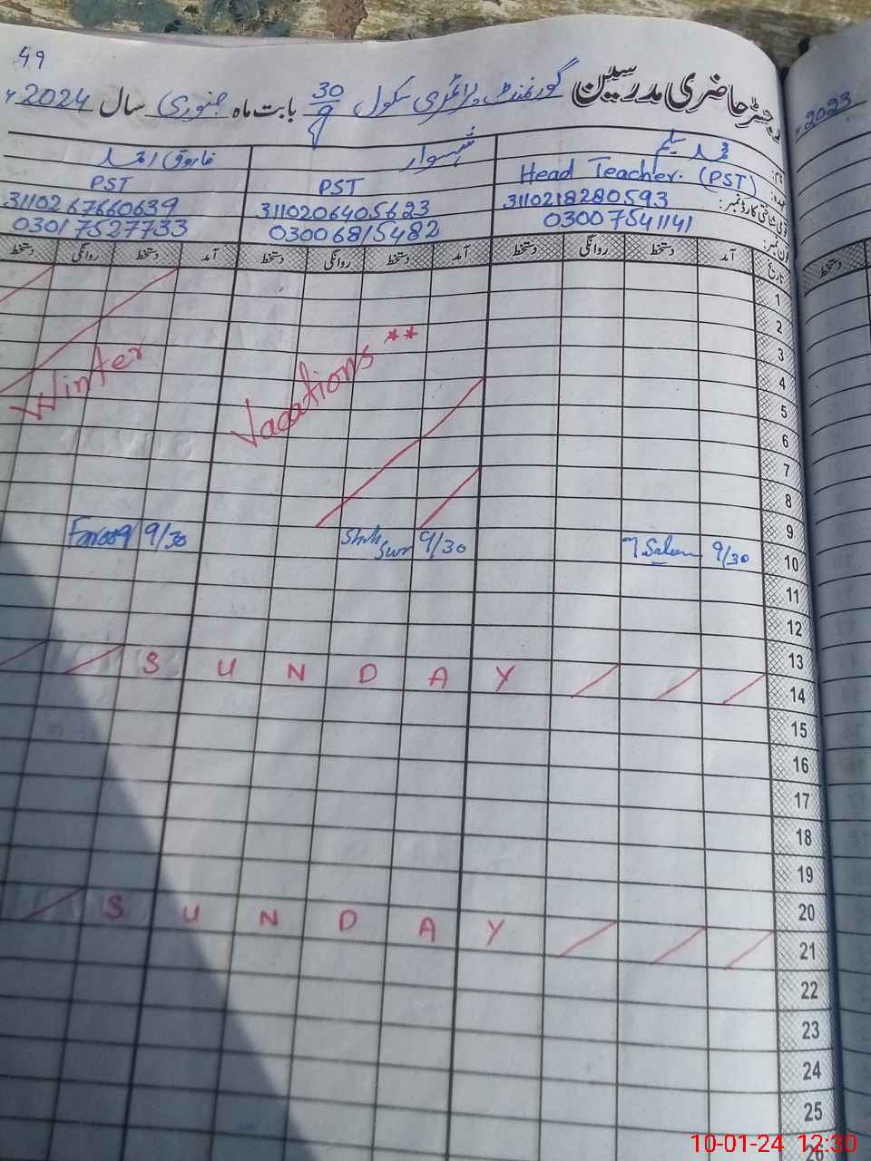 | Name: Sh**** Sw**** Designation: (School Headmaster's/Headmistress's) PST Phone/Cell Number: 03**** |