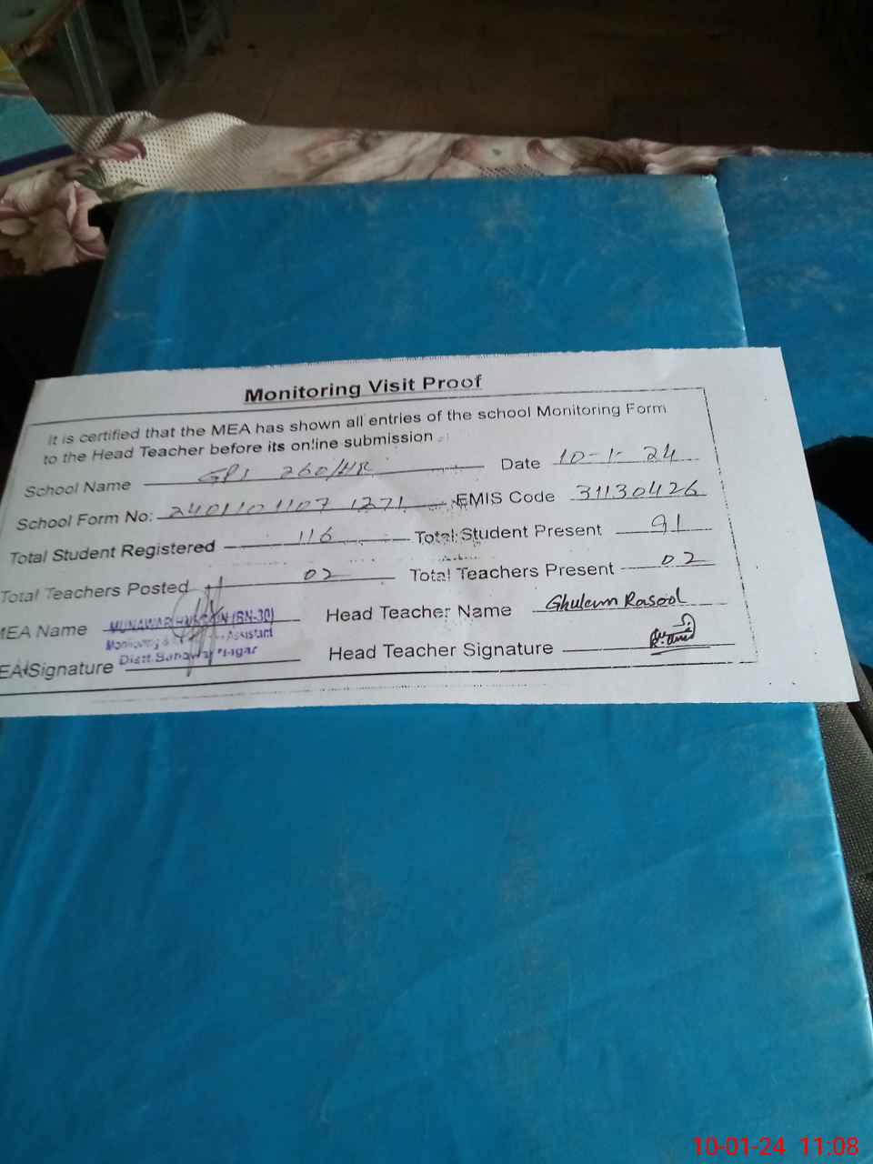 | EMIS Code: 31130426 | Name of School: GPS CHAK NO.260/HR WEST | |||