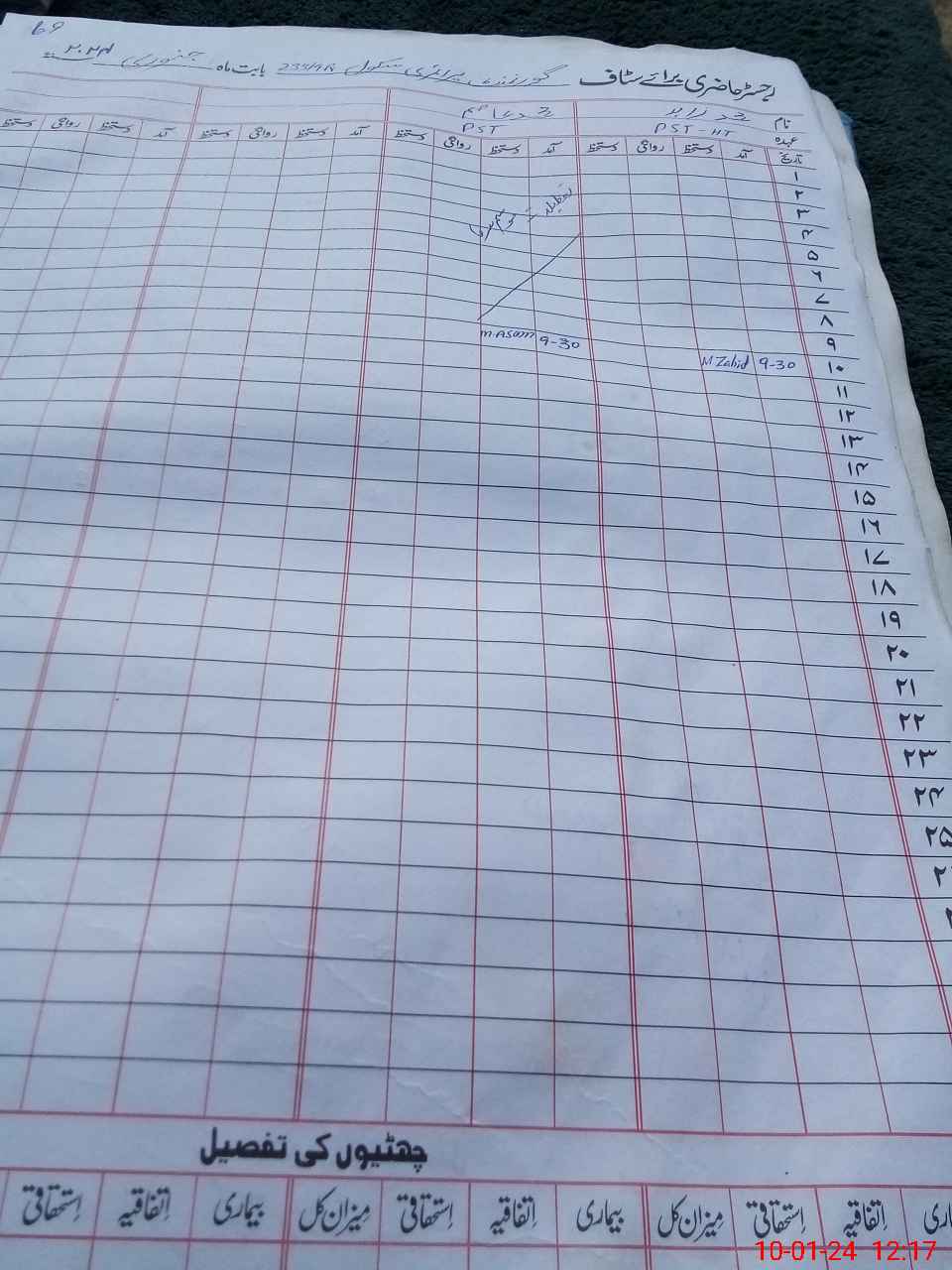 | CNIC | Full Name | Designation | R/C | Absence During Last Calender Month |
