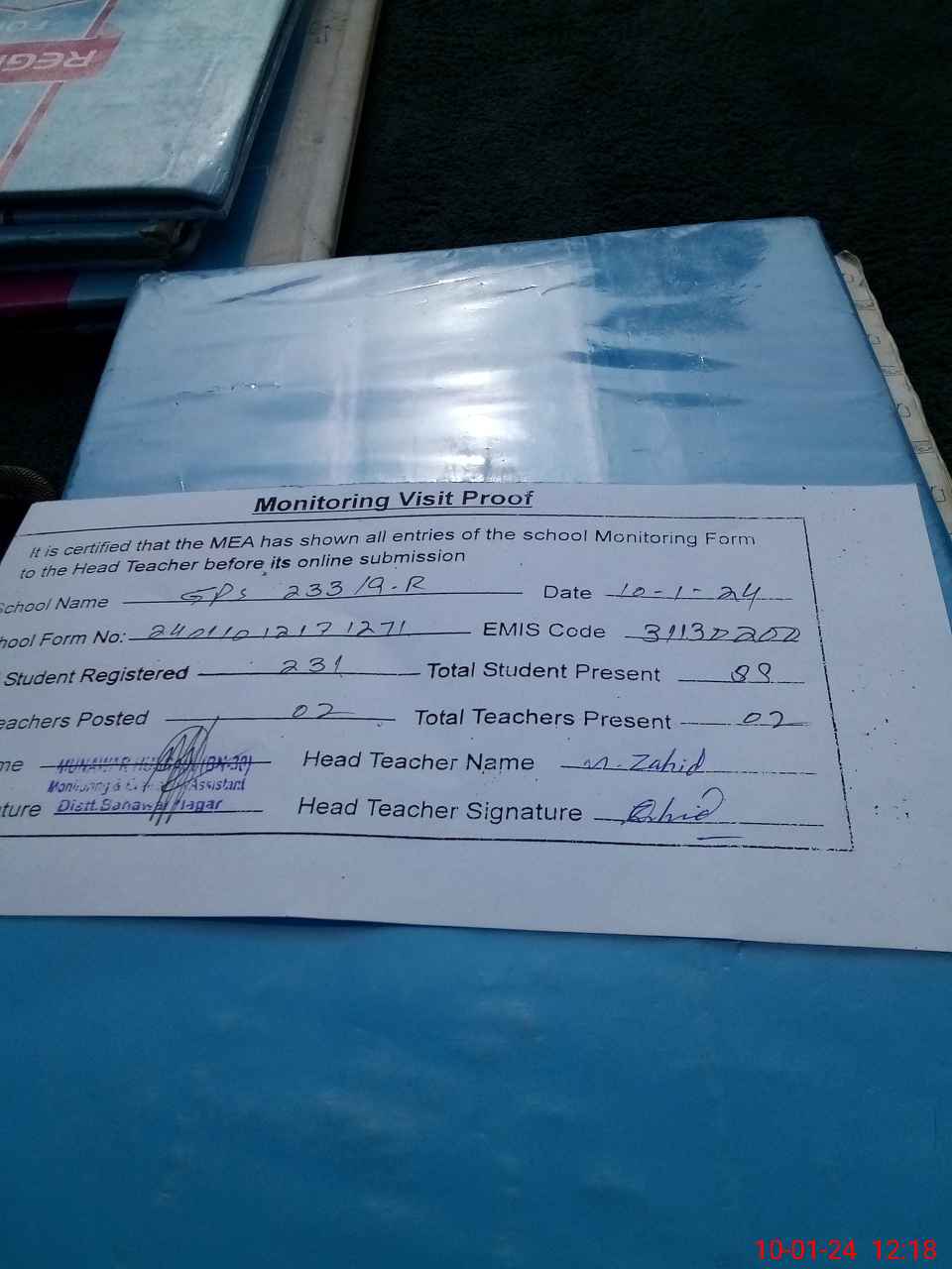 | Attendance Register | Head Teacher | MEA with School | Visit Proof |