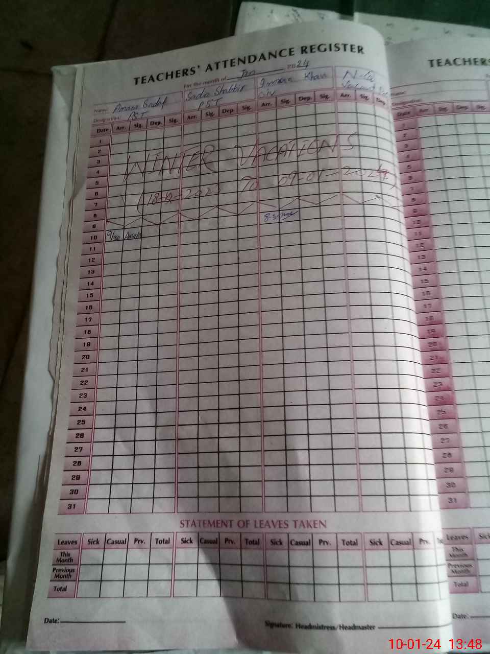 | 31**** | Sa**** Sh**** | 1 | 0 | 16 | 0 | 0 | 0 | 0 | 0 | 0 | 0 | Absent (Un-Authorized) | |