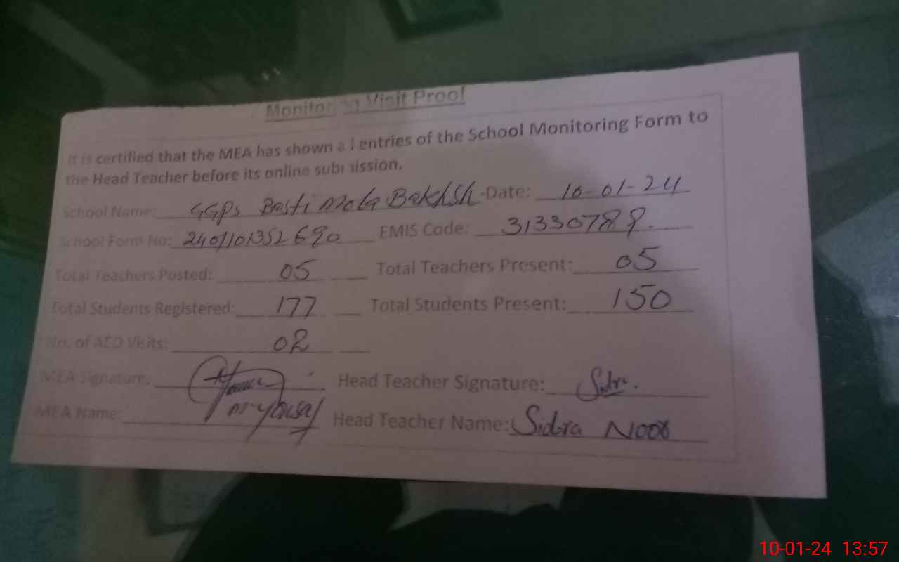 | EMIS Code: 31330789 | Name of School: GGPS BASTI MOLA BAKHSH | |||