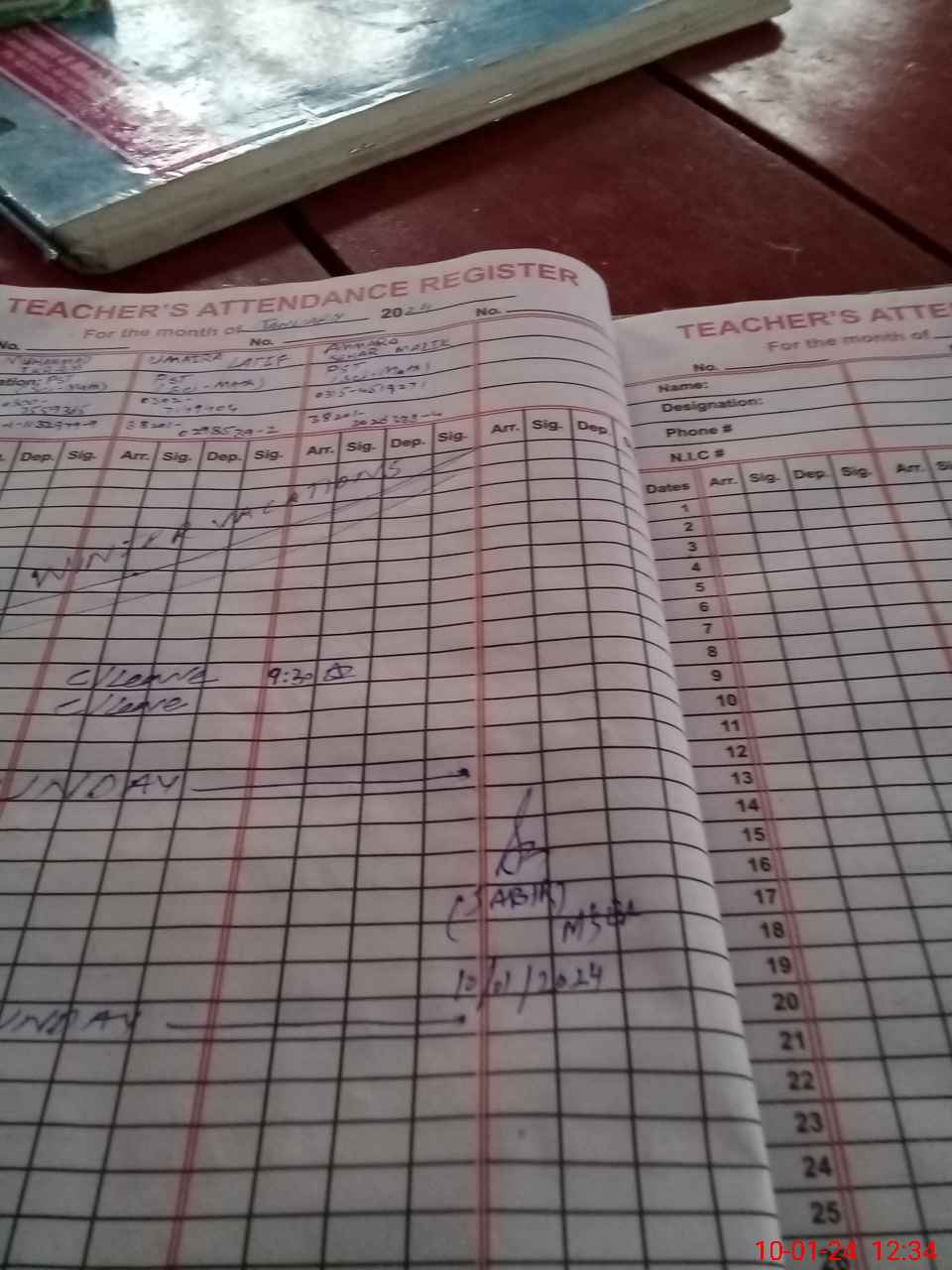 | CNIC | Full Name | Designation | R/C | Absence during last cal. month |