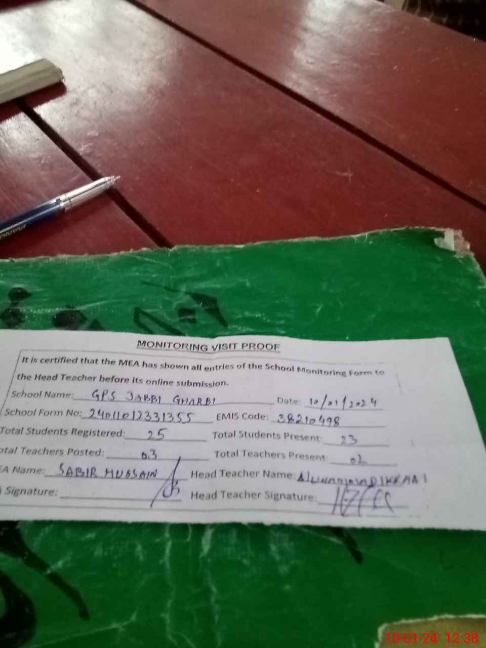 | Attendance Register | Head Teacher | MEA with School | Visit Proof |
