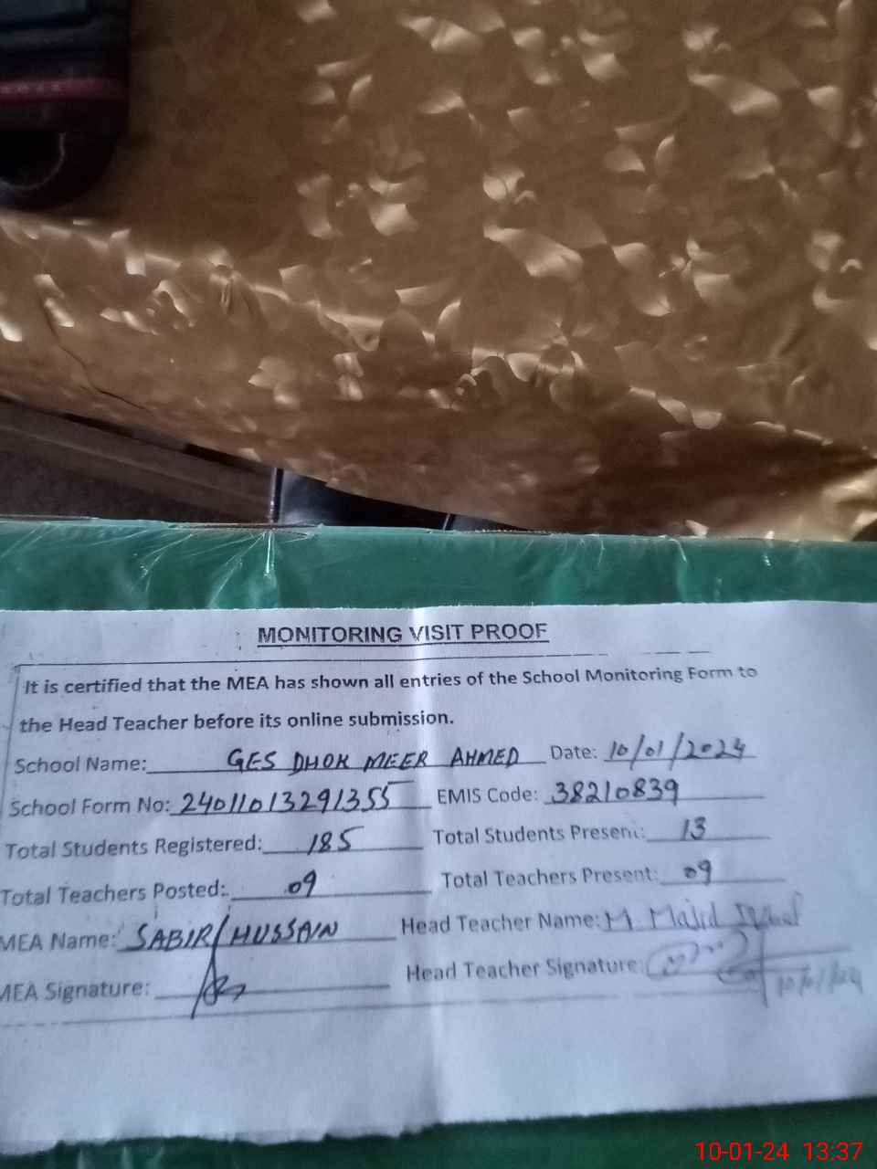 | EMIS Code: 38210839 | Name of School: GES DHOK MEER AHMED | |||
