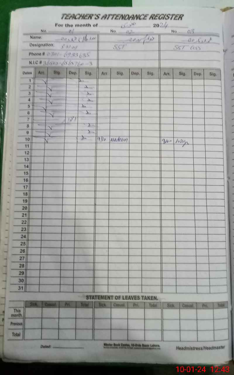 | Name: HA**** M.**** Designation: (School Headmaster's/Headmistress's) SST(G) Phone/Cell Number: 03**** |