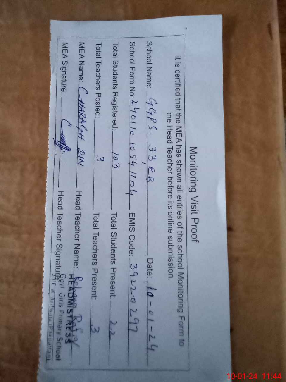 | EMIS Code: 39220297 | Name of School: GGPS 33 EB | |||