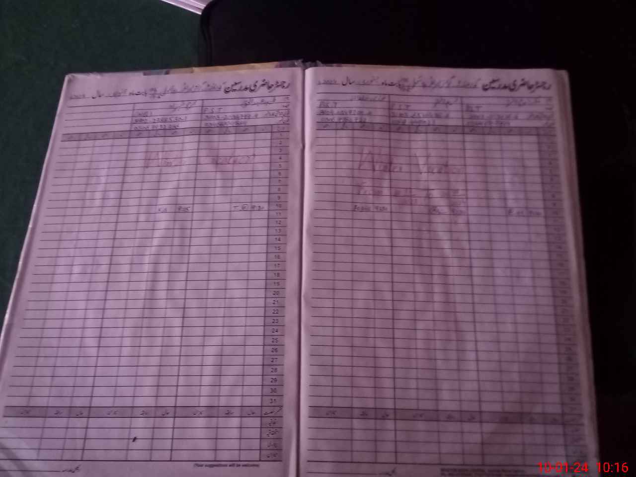 | CNIC | Full Name | Designation | R/C | Absence During Last Calender Month |