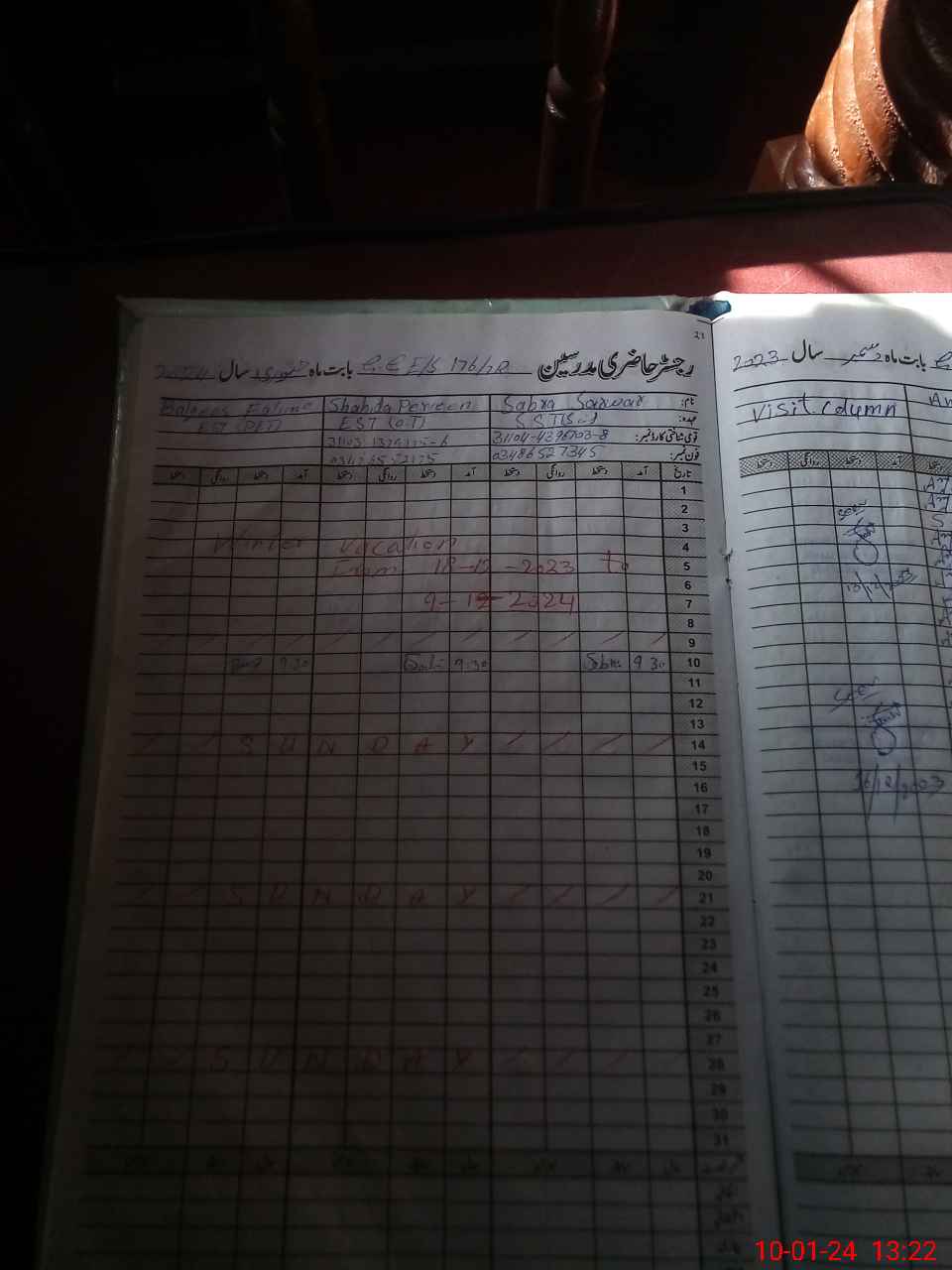 | 31**** | Sa**** Fa**** | 1 | 1 | 0 | 0 | 0 | 0 | 0 | 0 | 0 | 1 | Absent (Un-Authorized) | |