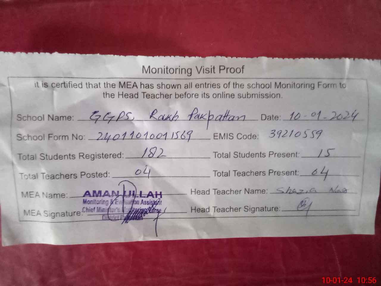 | EMIS Code: 39210559 | Name of School: GGPS RAKH PAKPATTAN | |||