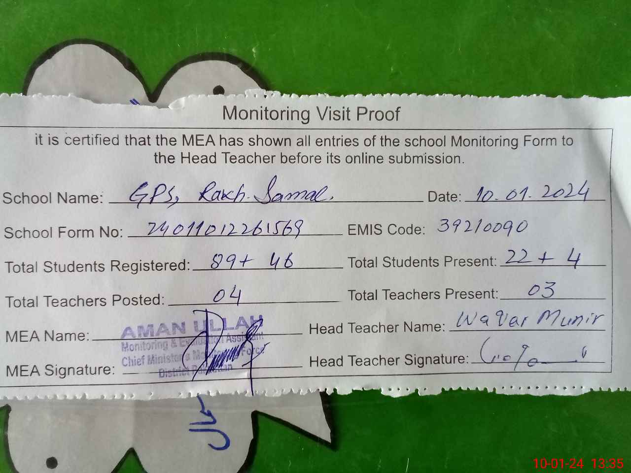 | EMIS Code: 39210090 | Name of School: GPS RAKH SMALL P/O 17/SP PAKPATTAN | |||