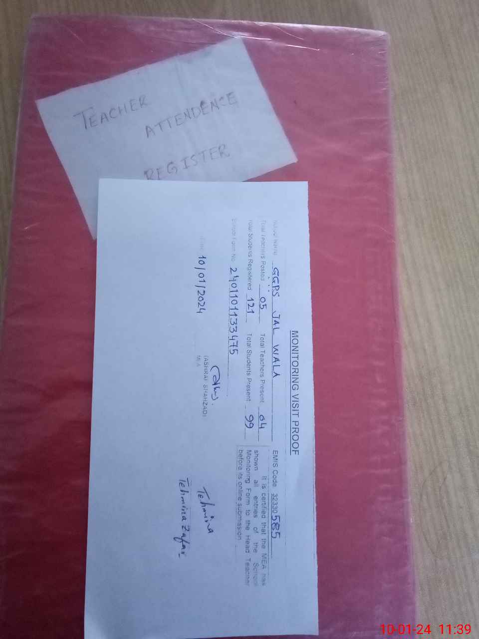 | EMIS Code: 32330585 | Name of School: GGPS JAL WALA | |||