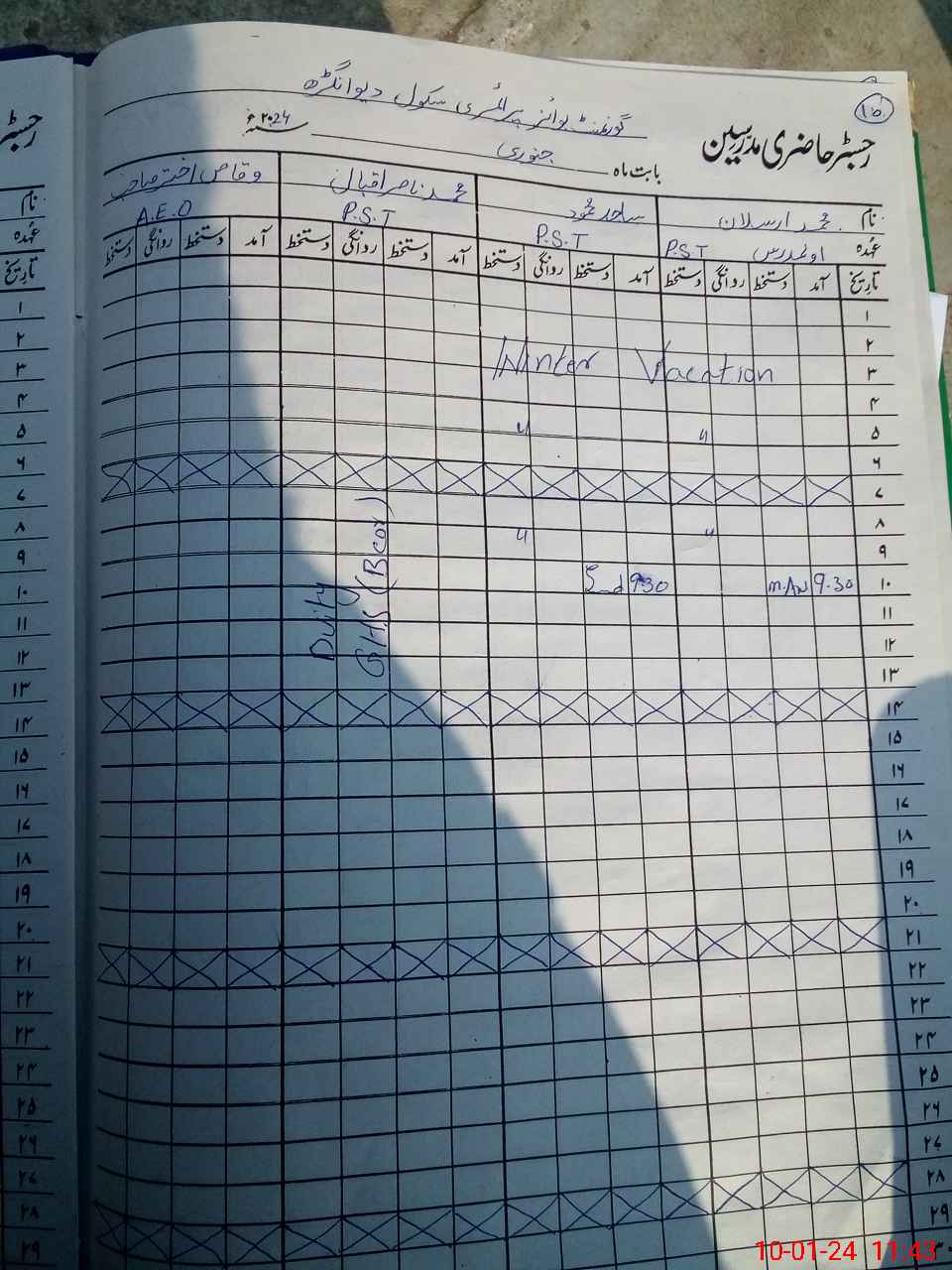 | Leave | Duty | Absent | Maternity | Medical | Ex- Pak |