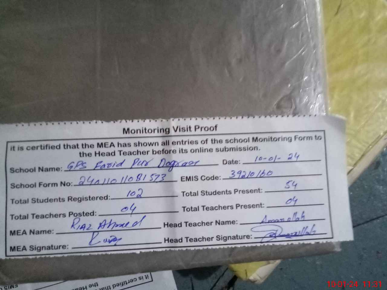 | EMIS Code: 39210160 | Name of School: GPS FARID PUR DOGRAN | |||