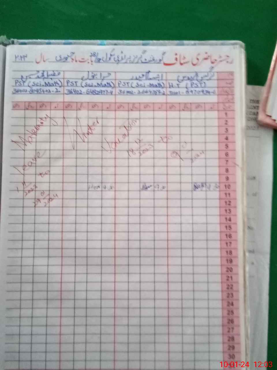 | 36**** | Fa**** Mu**** Hu**** | PST | Regular | 0 | 0 | 0 | 0 | 0 | 0 | 0 | 0 | 0 | Maternity |