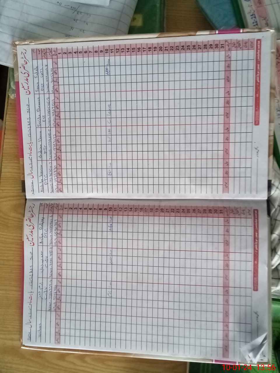 | CNIC | Full Name | Designation | R/C | Absence During Last Calender Month |