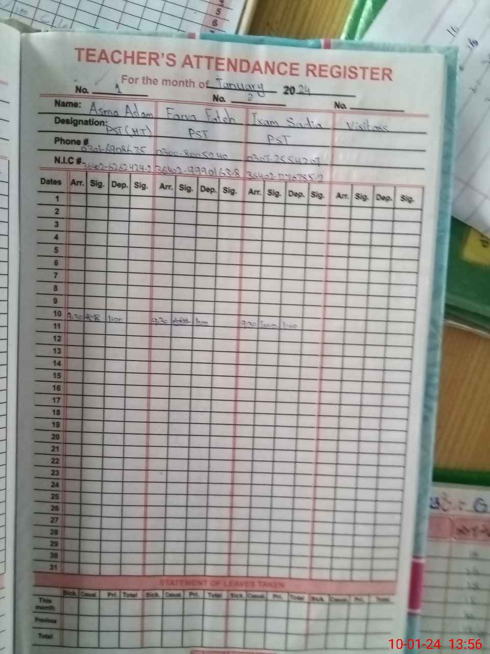| Name: AS**** AS**** Designation: (School Headmaster's/Headmistress's) PST Phone/Cell Number: 03**** |