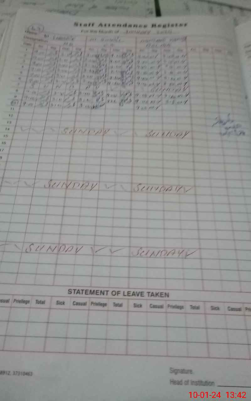 | CNIC | Full Name | Designation | R/C | Absence During Last Calender Month |