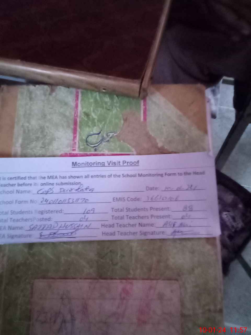 | Certified that this School was Inspected by the Undersigned MEA/DMO Today and the Information Stated Above is as Per Record. | |||||