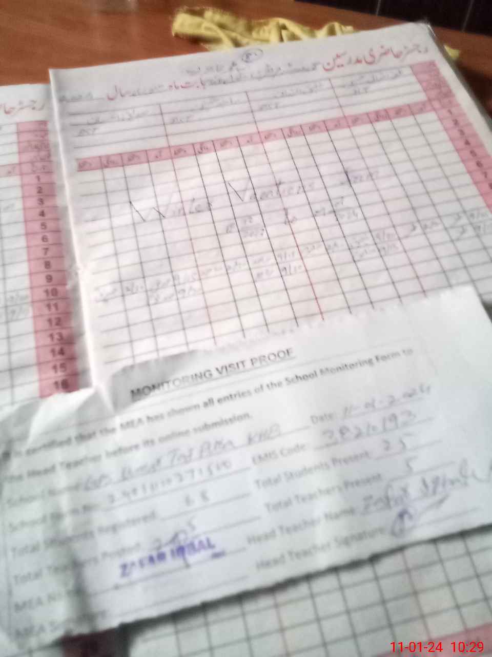 | Attendance Register | Head Teacher | MEA with School | Visit Proof |