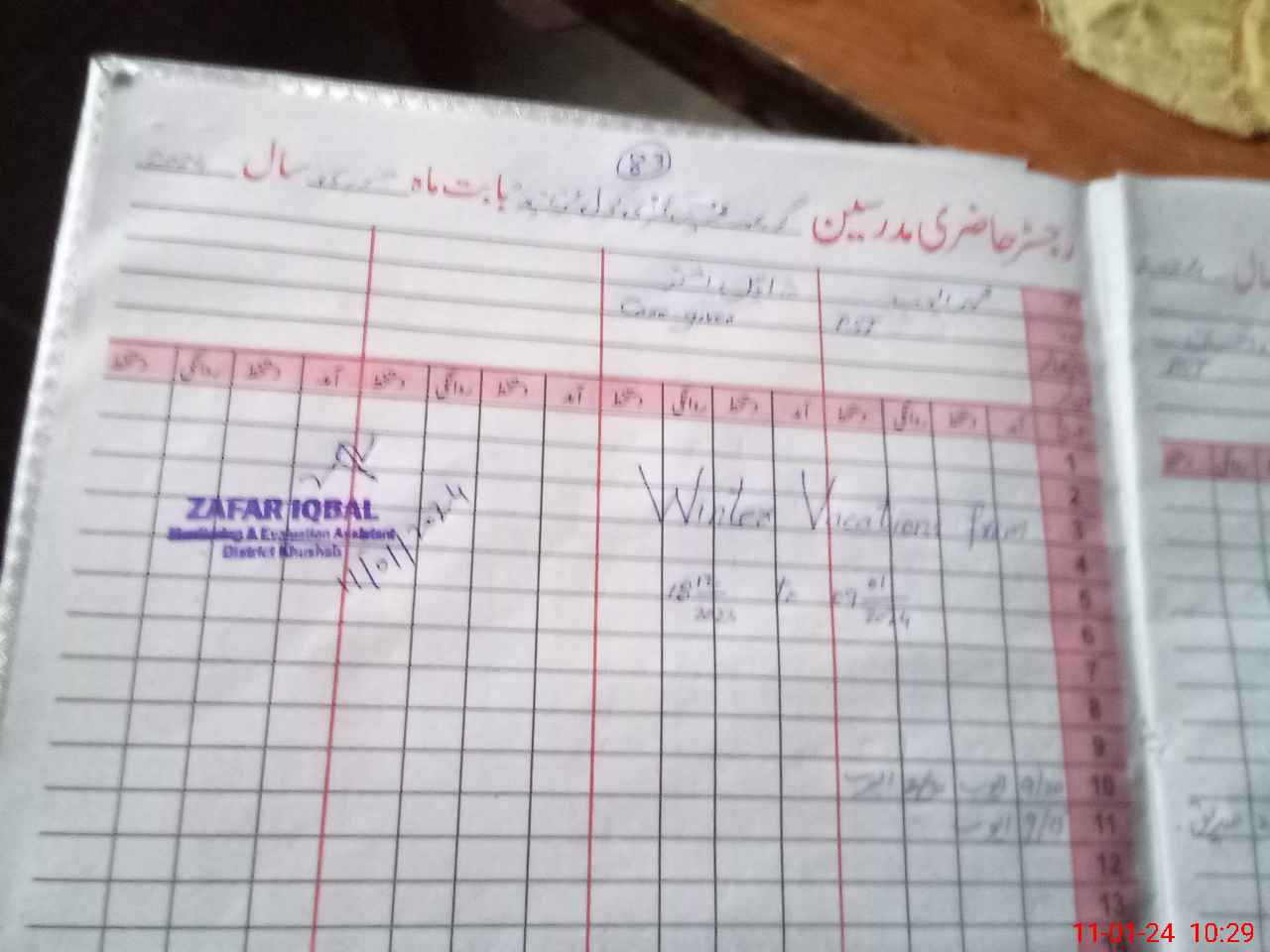 | CNIC | Full Name | Designation | R/C | Absence During Last Calender Month |