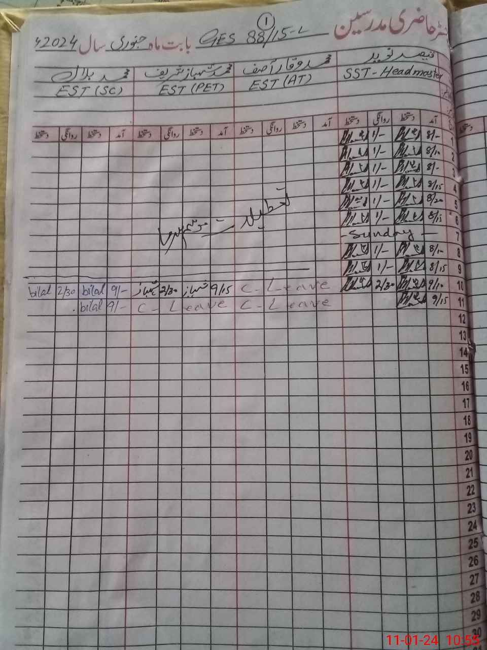 | CNIC | Full Name | Designation | R/C | Absence During Last Calender Month |