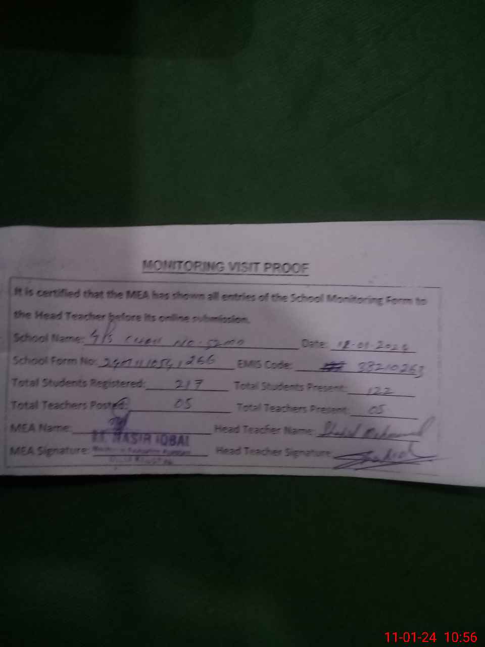| Certified that this School was Inspected by the Undersigned MEA/DMO Today and the Information Stated Above is as Per Record. | |||||
