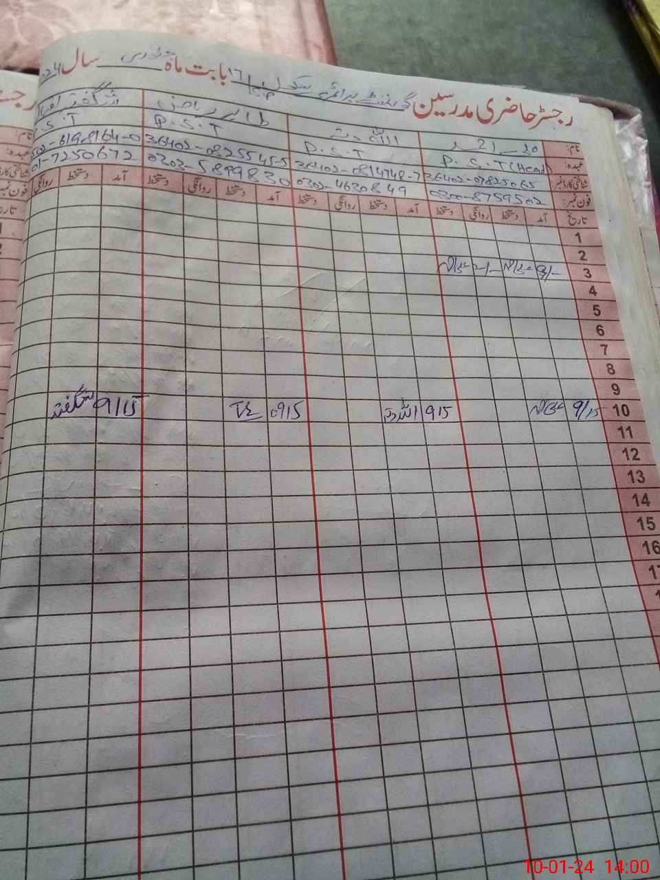 | CNIC | Full Name | Designation | R/C | Absence During Last Calender Month |