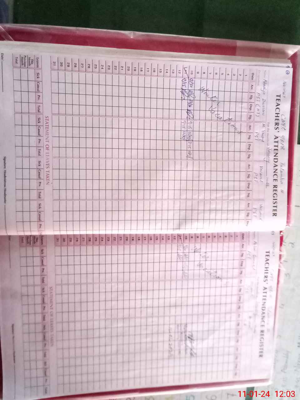 | Total no. of Classrooms: 8 No. of Classrooms Used for Teaching: 8 No. of Classrooms Storing Old Furniture, FTBs, etc: 0Comments if Any: NSB and FTF record register not updated for the month of December 2023 and bank account statement for the month of December also not available |