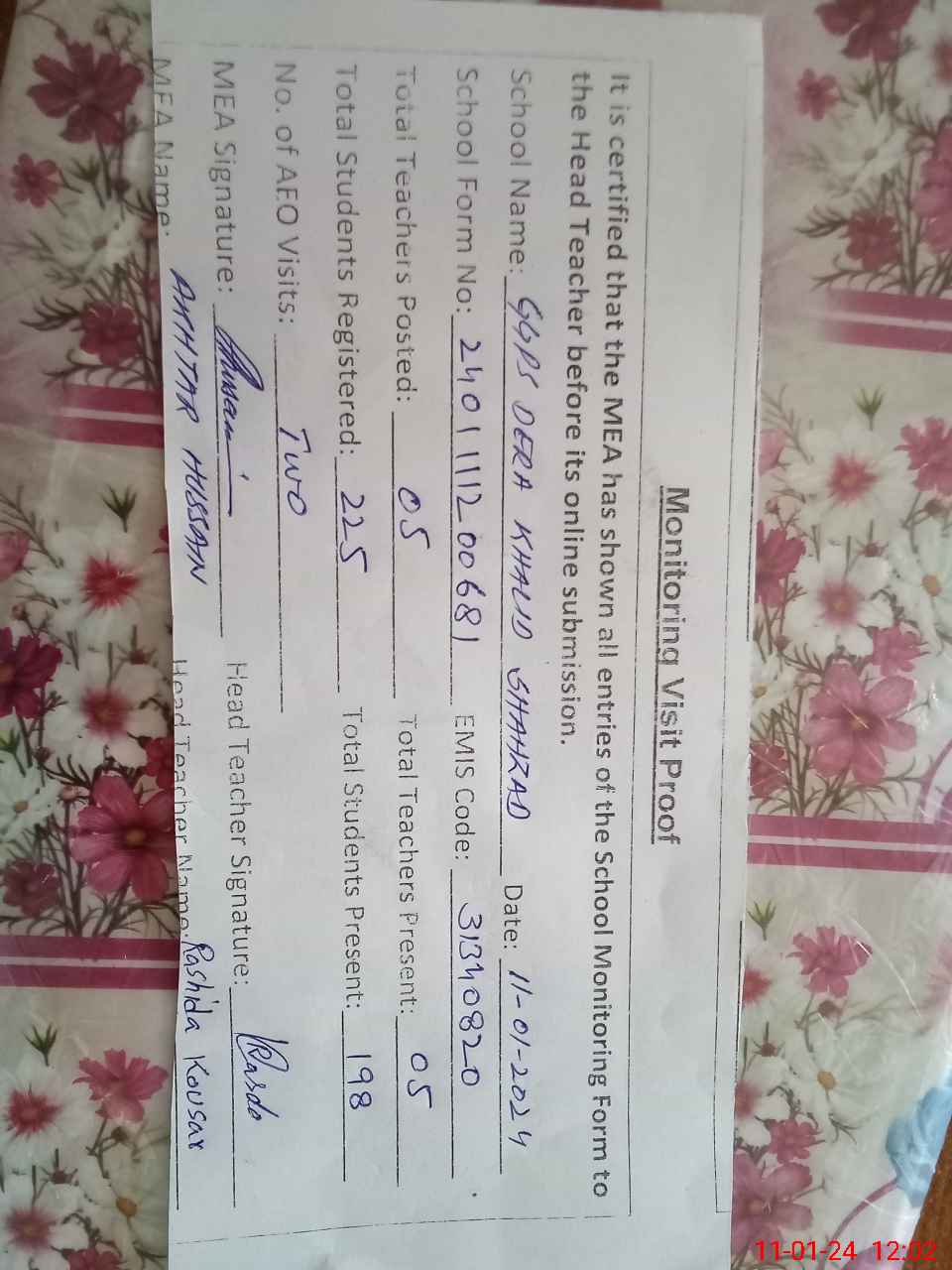 | EMIS Code: 31340820 | Name of School: GGPS DERA KHALID SHAHZAD | |||