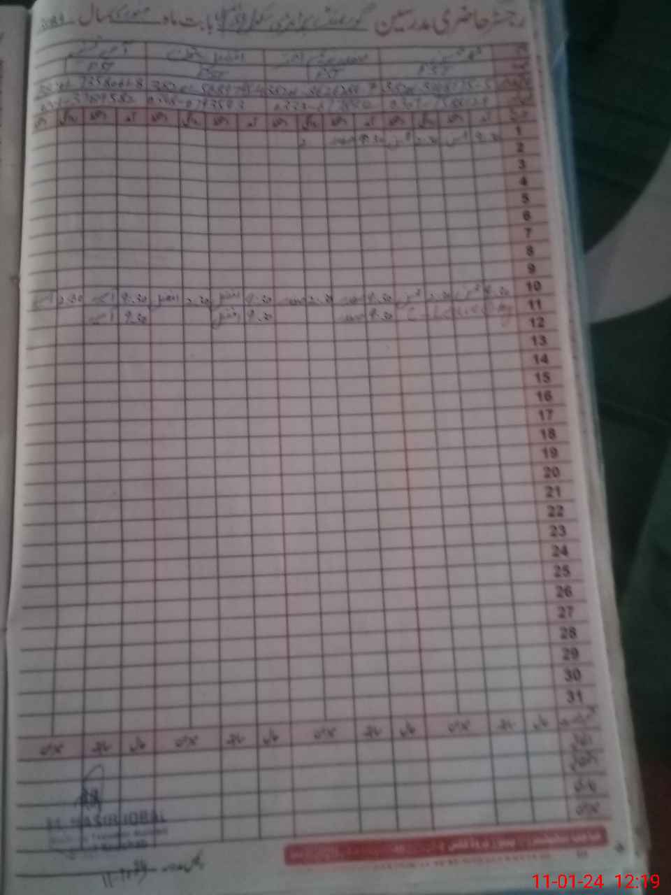 | CNIC | Full Name | Designation | R/C | Absence During Last Calender Month |