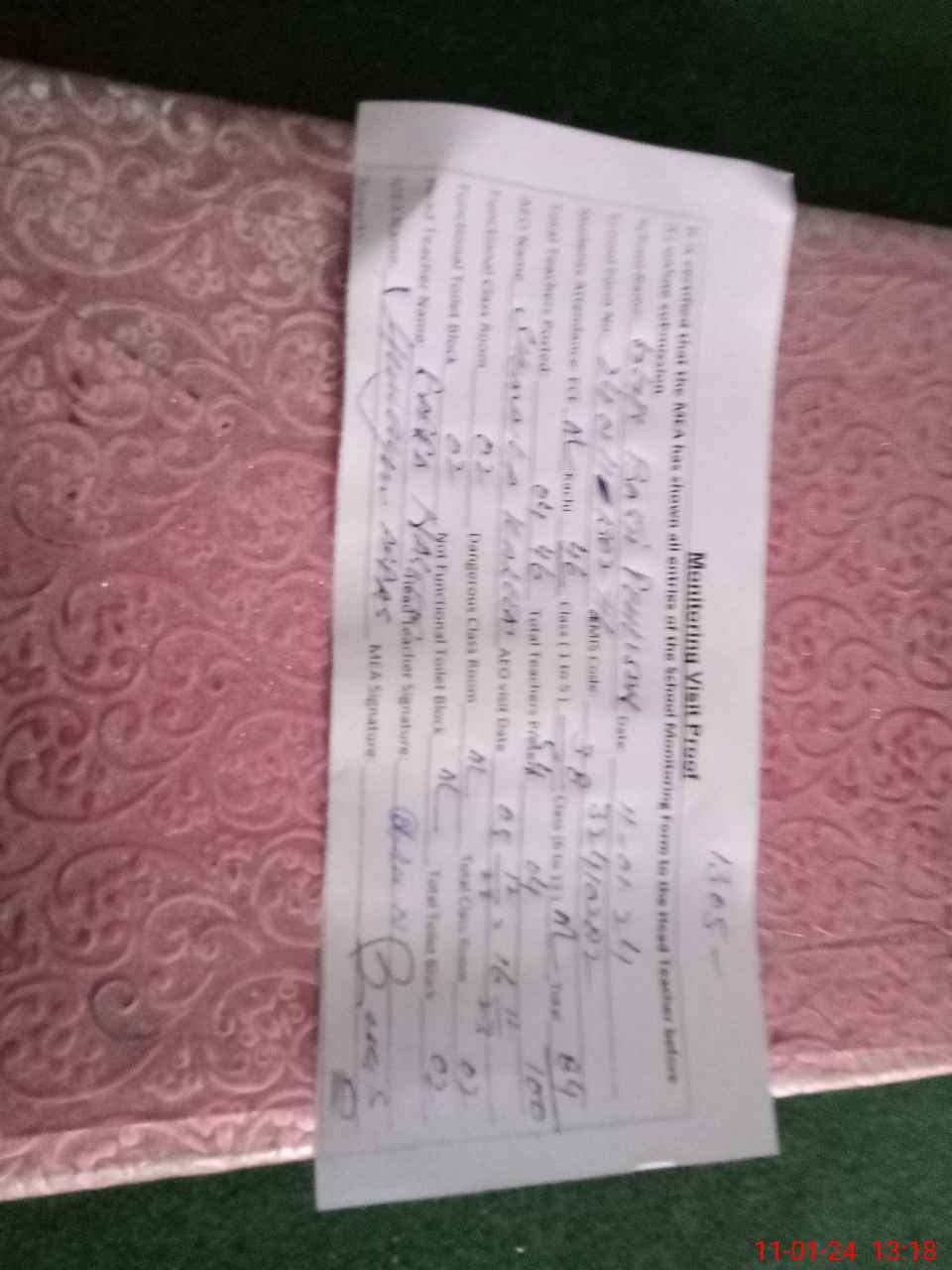 | Attendance Register | Head Teacher | MEA with School | Visit Proof |