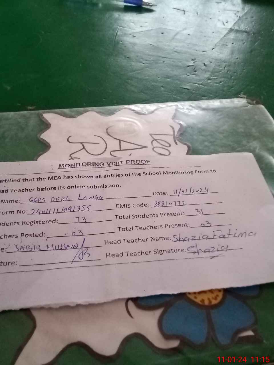 | EMIS Code: 38210772 | Name of School: GGPS DERA LANGA | |||