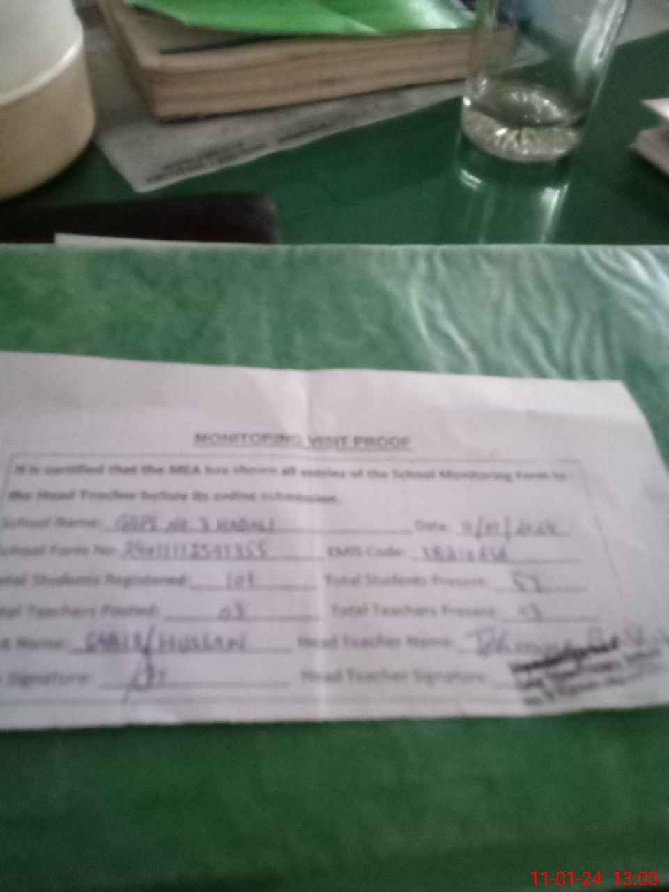 | Attendance Register | Head Teacher | MEA with School | Visit Proof |