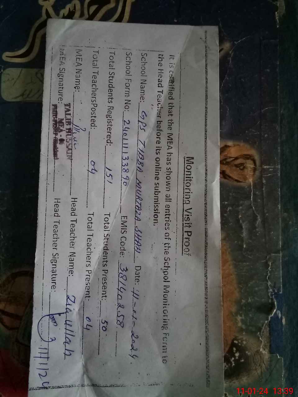 | EMIS Code: 38140258 | Name of School: GPS TIBBA MURTAZA SHAH | |||