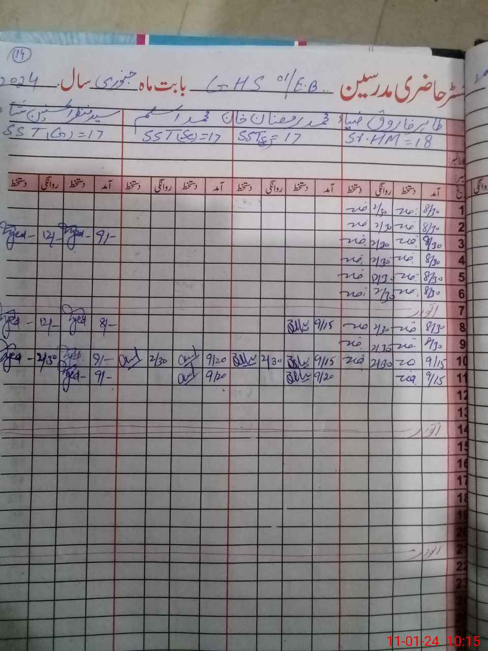 | CNIC | Full Name | Designation | R/C | Absence During Last Calender Month |