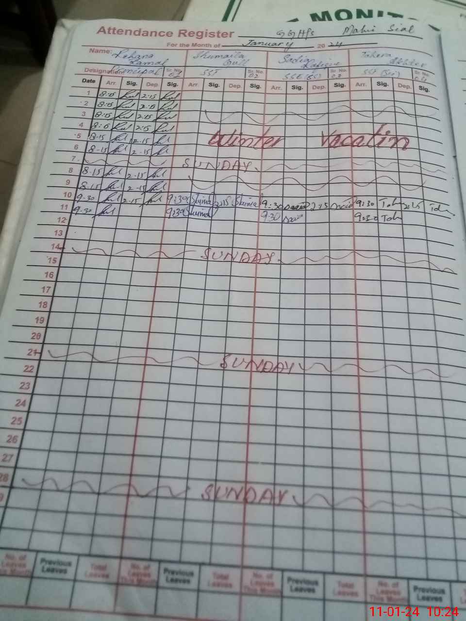 | 36**** | Sh**** Ra**** | 1 | 0 | 0 | 31 | 0 | 0 | 0 | 0 | 0 | 0 | Absent (Un-Authorized) | |