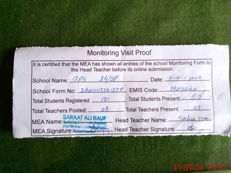 | EMIS Code: 39210240 | Name of School: GPS CHAK NO. 34 SP | |||