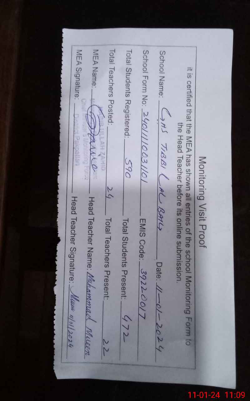 | EMIS Code: 39220017 | Name of School: GHS TIBBI LAL BAIG | |||