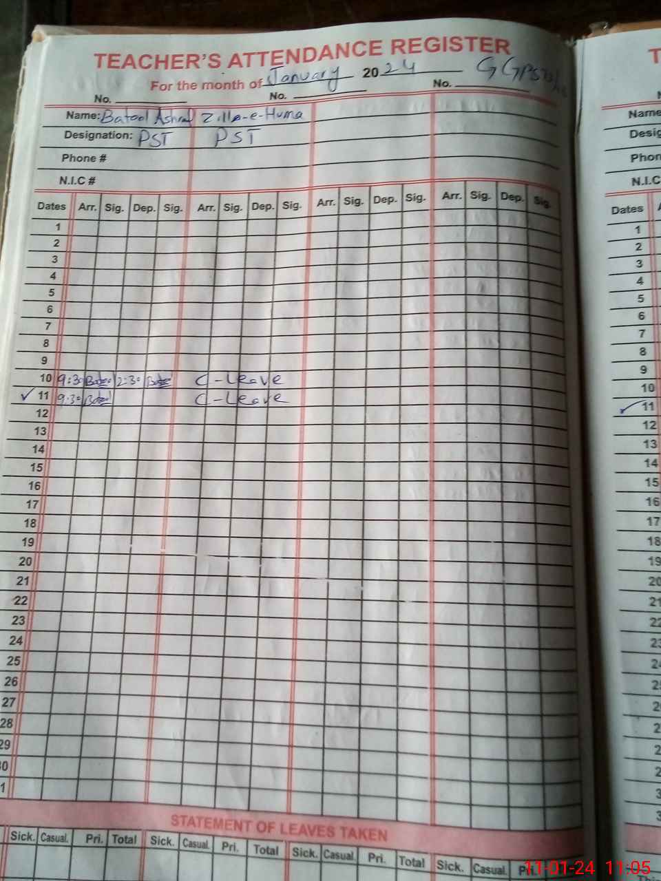 | Name: BA**** AS**** Designation: (School Headmaster's/Headmistress's) PST Phone/Cell Number: 03**** |