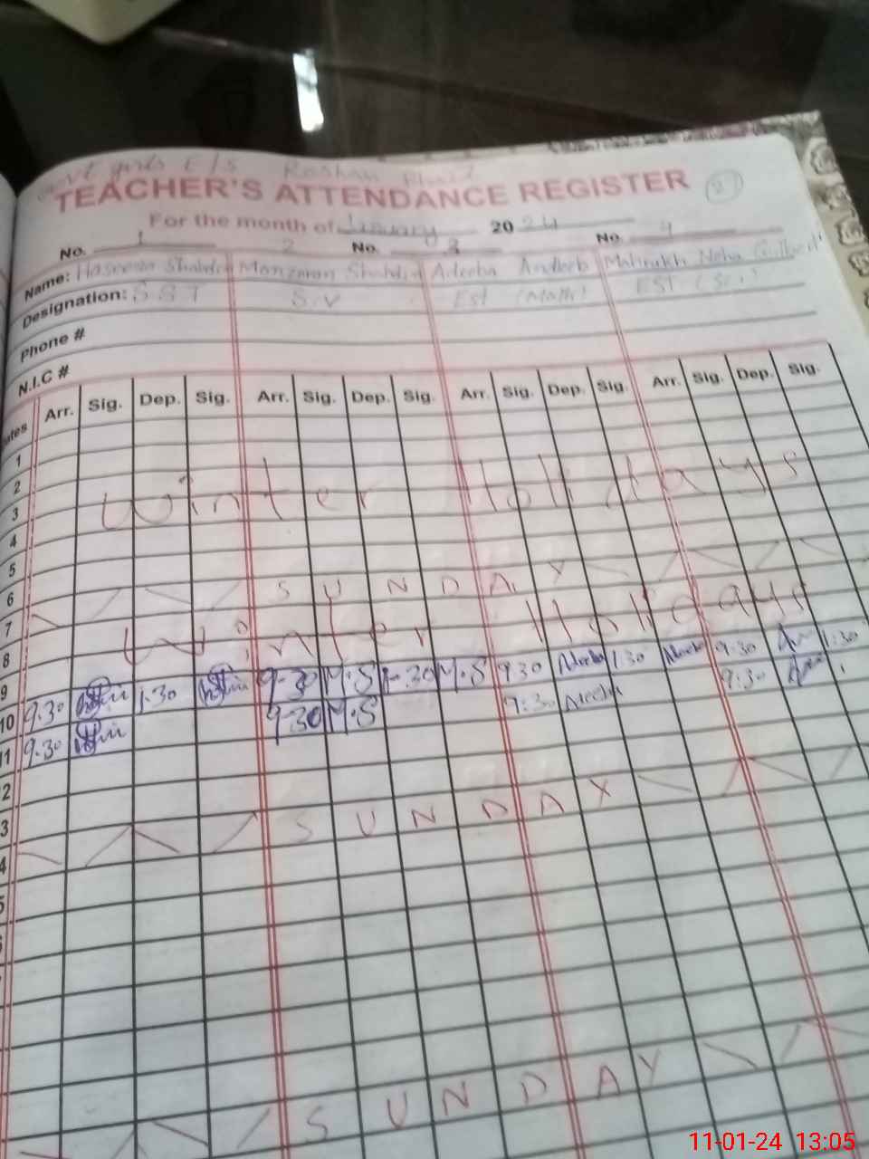 | Remarks (Use Separate Page if Required): Ece and kachi classes off due to winter | |||||