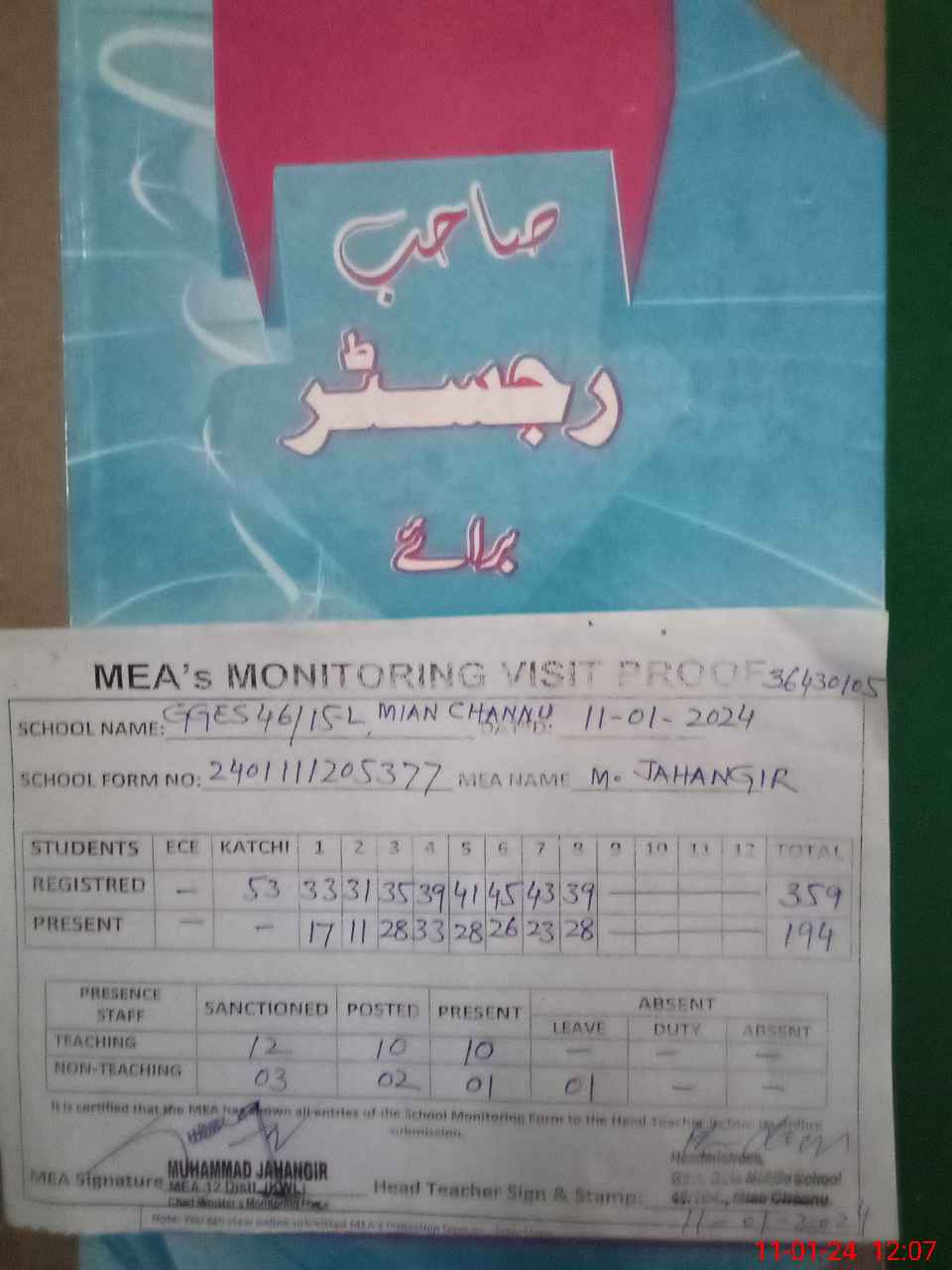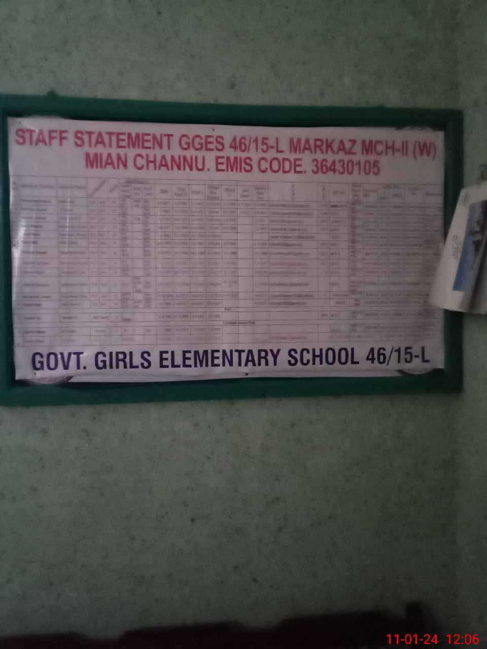 | EMIS Code: 36430105 | Name of School: GGES 46/15-L, MIAN CHANNU | |||