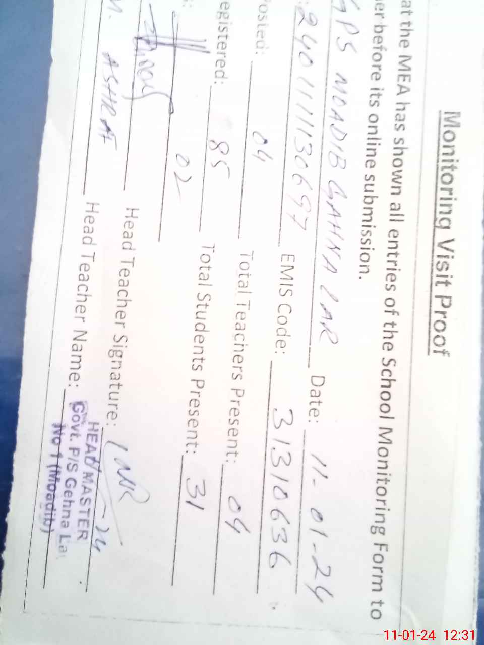 | EMIS Code: 31310636 | Name of School: GPS MOADIB GAHANA LAR | |||