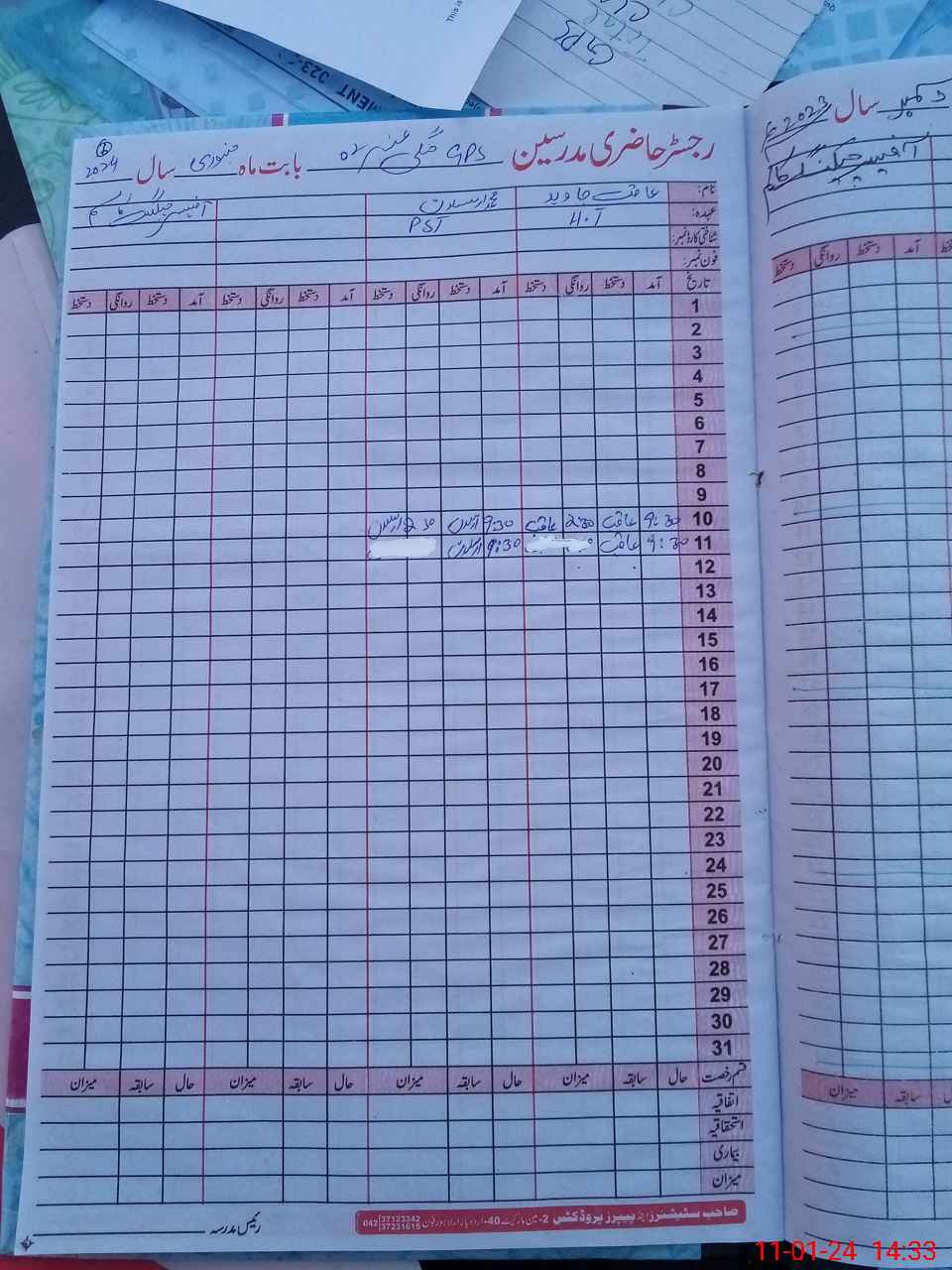 | Remarks (Use Separate Page if Required): 35student are on leave due to cold weather As directed by Cheif minister of Punjab | |||||