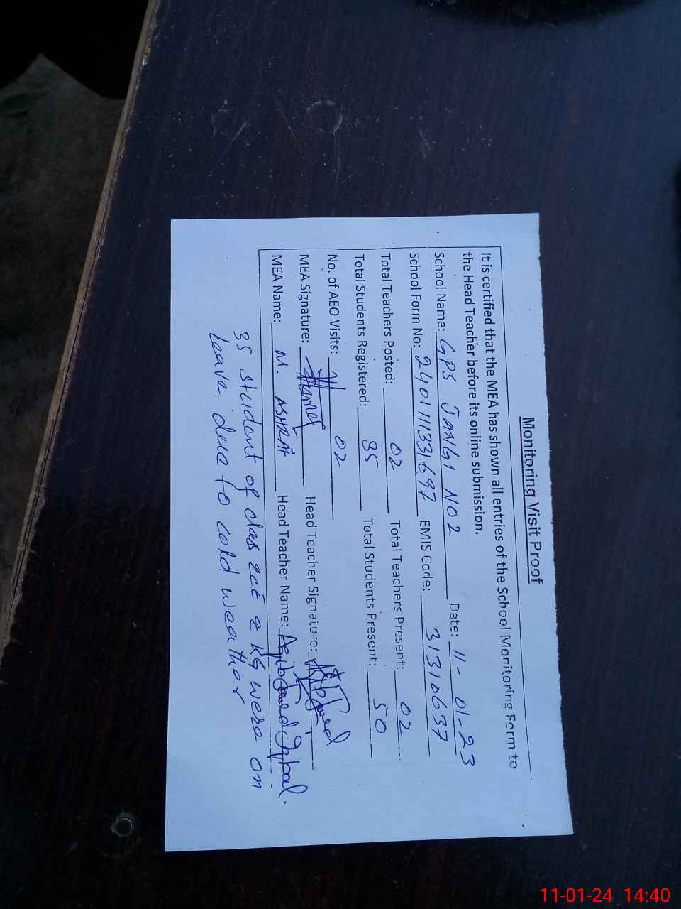 | EMIS Code: 31310637 | Name of School: GPS JANGI NO. 2 | |||