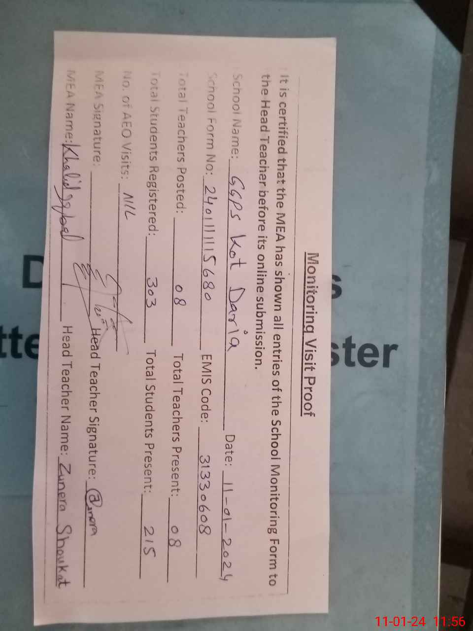 | EMIS Code: 31330608 | Name of School: GGPS KOT DARIA | |||